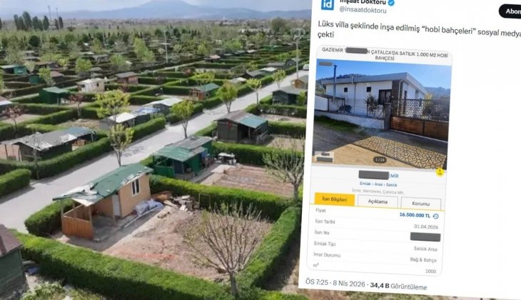 <p>Bu gelişmelerle birlikte hobi bahçeleri sosyal medyanın da gündeminde yer almaya devam ediyor. Lüks villa şeklinde yapılan bu yapılar tepkiye neden oldu. İnşaat piyasasına dair paylaşımlarıyla dikkatleri üzerine çeken İnşaat doktoru, sosyal medya hesabından 16 milyon 500 bin liraya satılan lüks villa şeklindeki hobi bahçesini paylaşarak 'Beton hobisi' yorumunu yaptı.</p>