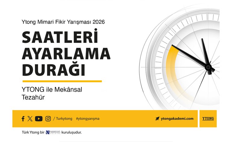 Türk Ytong tarafından düzenlenen Ytong Mimari Fikir Yarışması’nın bu yılki teması “Saatleri Ayarlama Durağı” olarak açıklandı. Son başvuru tarihi 8 Mayıs 2026 olan yarışma Ahmet Hamdi Tanpınar’ın “Saatleri Ayarlama Enstitüsü” romanındaki “zaman, kimlik ve toplum” gibi evrensel temaları bugünün dönüşüm ve kırılmaları içinde yeniden ele almayı amaçlıyor.